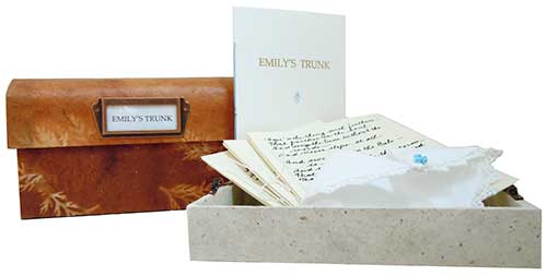 the poet Emily Dickinson. Her trunk, full of hand bound poems,