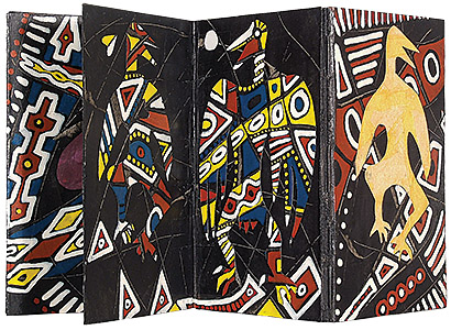 Dos-à-dos painter’s book with slipcase, acrylic on multilayered papers, 5 pages, 9.4” x 6.75”, unique, $850.